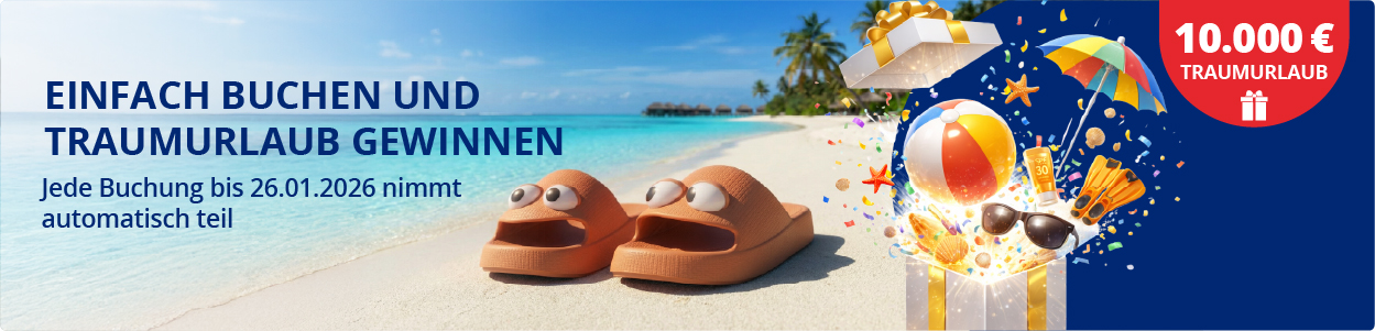 Einfach buchen und Traumurlaub gewinnen - jede Buchung bis 26.01.2026 nimmt automatisch teil.
