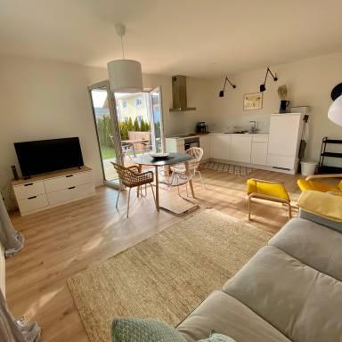 Moderne und dennoch gemütliche Ferienwohnung mit Südterrasse