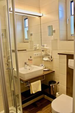 Doppelzimmer Standard mit zwei Einzelbetten und modernem Bad