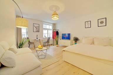 Die schöne sächsische Metropole Leipzig im Osten Deutschlands lockt seine Besucher mit Messen und kulturellen Veranstaltungen. Doch auch die Seenlandschaft in der näheren Umgebung lädt zum Verweilen ein. Ferienwohnungen in Leipzig beherbergen Sie in einem Ambiente, dass Sie das Gefühl von Zu-Hause-Sein spüren lässt. Entdecken Sie tagsüber das historische Zentrum des Buchdrucks, besuchen Sie die alten Kirchen, vor allem die Nikolaikirche und die zahlreichen Museen, oder schlendern Sie einfach durch das Zentrum der größten Metropole der neuen Bundesländer. Viele Kaffeehäuser in der Innenstadt bieten eine Leipziger Lerche als stadttypische Spezialität an. Sie können auch die große musikalische Tradition der Stadt entdecken und sich auf die Spuren von Johann Sebastian Bach sowie Felix Mendelssohn Bartholdy begeben. Das Völkerschlachtdenkmal in Leipzig erinnert an Befreiungskriege und liefert Ihnen geschichtliche Informationen. Es lohnt sich auch, das Neue Rathaus zu bestaunen und den MDR-Turm zu besteigen, was natürlich mit dem Fahrstuhl möglich ist. Die Aussicht ist großartig. Sollten Sie abends noch Lust auf Unterhaltung haben, bietet Leipzig ein buntes Programm. Ob bei Konzerten oder Sportereignissen in der Arena, zahlreichen Theateraufführungen, Kabarettveranstaltungen oder musikalischen Aufführungen im Gewandhaus oder in der Oper, die Stadt hält für jeden Geschmack etwas bereit. Die Jugend kann zwischen einer Vielzahl von Diskotheken wählen, und auch die Restaurants sind sehr vielseitig. Wer keine Ferienwohnung in Leipzig möchte, wird sicher auch im breiten Angebot der Gemeinden des Umlandes fündig. Die Infrastruktur ist sehr gut entwickelt und man kann sich getrost auf Bus und Bahn verlassen.