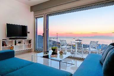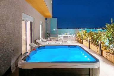 Rhodes Skyline Suite mit Whirlpool außerhalb der Tür und Meerblick