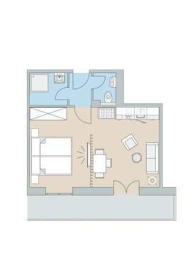 Studio, Toilette und Bad/Dusche getrennt, Balkon