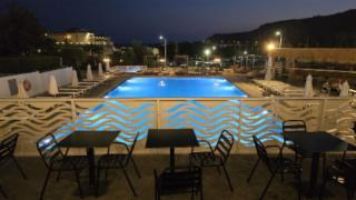 Der Strand Lothiarika ist ca. 300 m entfernt. Es ist ein Kieselstrand mit einem allmählichen Zugang zum Meer. Liegestühle, Sonnenschirme und Badetücher gegen Gebühr.