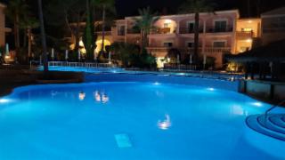 Schön schmiegt sich das allsun Hotel Lago Playa Park in Cala Ratjada zwischen Strand und bewaldetem, hügeligem Hinterland. Möglich machen es die niedrigen Bauten der Ferienanlage. In den im mallorquinischen Villenstil gehaltenen Wohngebäuden der 4-Sterne-Unterkunft sind 79 Doppelzimmer und 98 Apartments untergebracht. Bei schönem Wetter nutzen die Gäste gerne den ansprechend mit Palmen, Hecken und Büschen bepflanzten Außenbereich. Im Mittelpunkt des Interesses stehen natürlich die vier unterschiedlich großen Pools, von denen drei nur durch Mauern voneinander getrennt sind. Im Kinderbecken planschen die Kleinen unter Aufsicht der Eltern. Auf der die Pools umgebende Sonnenterrasse stehen Liegestühle und Schirme bereit, auf das es sich die Hotelgäste gut gehen lassen. Auf Aktivurlaub erpichte Gäste freuen sich über die vom allsun Hotel Lago Park angebotenen Wanderungen, Ausflüge und Nordic Walking Touren. Der Osten von Mallorca ist dazu hervorragend geeignet. Per Mietfahrrad vom Hotel kann das Umland vom Sattel aus erkundet werden.