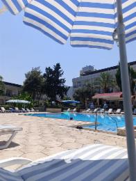 Das Altinkaya Resort in Girne ist ein kleiner Komplex bestehend aus klassischen Hotelzimmern und extra stehenden Bungalow-Maisonettes. Kleiner Nachteil: Die Anlage liegt leider direkt an der Straße, aber nach ein paar Tagen hat man sich daran gewöhnt. Der Pool bildete das Zentrum der Anlage, umrahmt von gepflegten Grünanlagen. Wir waren über die Weihnachtsfeiertage dort, zum Poolbaden war es etwas zu frisch, schön anzusehen war es aber dennoch. Bei genauem Hinschauen fällt auf, dass Hotel, Anlage und Ausstattung in die Jahre gekommen sind. Das tut der Gemütlichkeit und dem Charme aber keinen Abbruch. Wir haben uns sehr wohl gefühlt, auch wenn nicht alles perfekt war. Zu unserem Reisezeitpunkt war das Hotel relativ leer; neben uns waren hauptsächlich einheimische Gäste dort.