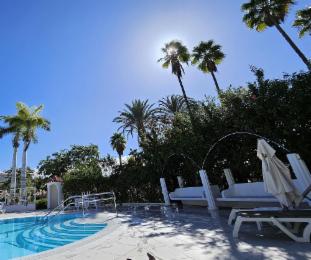 Im Zentrum der Anlage kann man einen großen Pool samt Sonnenterrasse nutzen, der von hohen Palmen und schön angelegten Beeten umgeben ist. Der etwa 500 Meter entfernte Sandstrand von Playa del Inglés bietet sich ebenfalls an für Sonnenanbeter und Badebegeisterte. Es besteht die Möglichkeit, gegen eine geringe Gebühr Sonnenschirme und Liegestühle zu mieten. Am Strand und in der näheren Umgebung des Hotels finden sich verschiedene Freizeit-und Sporteinrichtungen. Abgesehen von Beachvolleyball kann man beispielsweise Tennis und Golf spielen.