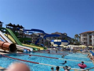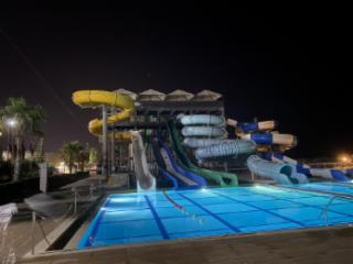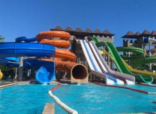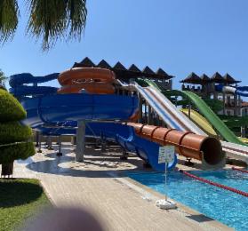 Das Eftalia Aqua Resort verfügt über eine weitläufige Poollandschaft, die für Badespaß sorgt. Groß und Klein erfrischen sich in den Becken und nutzen die zahlreichen Wasserrutschen.