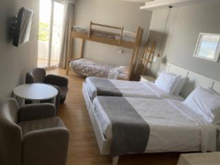 Das beliebte Strandhotel verfügt über 212 Zimmer in einem vierstöckigen Gebäude, das von einem wunderschönen Landschaftsgarten umgeben ist. Das Hotel verfügt über eine großzügige Empfangshalle mit Rezeption, Wechselstube und Lobbybar, Restaurant, Snackbar, Swimmingpool (Liegestühle und Sonnenschirme gegen Gebühr), Kinderbecken, Miniclub, Parkplatz und Sportplatz.