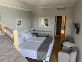 Die geschmackvoll eingerichteten, geräumigen Doppelzimmer, mit bis zu zwei Zustellbetten, sind mit Badezimmer (Badewanne, WC, Föhn), Telefon, Klimaanlage, Radio, Sat-TV, Kühlschrank und Balkon ausgestattet. Ein Safe ist an der Rezeption gegen Gebühr verfügbar. Ein Babybett und ein Hochstuhl sind auf Anfrage erhältlich (kostenlos). Zimmer mit Meerblick sind auf Anfrage verfügbar (gegen Gebühr).