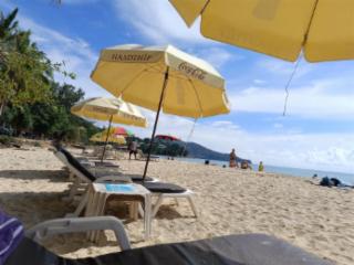 Das Hotel liegt nicht direkt am Strand, aber zum Strand ist es ein Fußweg von 5 Minuten. Der Strand ist zauberhaft. Sauber, viele Palmen, klares Wasser, überall günstige Liegen. Ganz toll. Außerdem befinden sich an der Strandpromenade auch viele Restaurants und Bars für den Abend. Shoppingmöglichkeiten eher gering. Auch fürs wirkliche feiern gehen lohnt sich eine Fahrt nach Patong. Hier haben wir für eine Taxifahrt 10 Euro gezahlt. Direkt gegenüber ist ein Taxistand, auch das Hotel bietet Fahrten nach Patong an, wie ich das mitbekommen habe. Supermarkt und Massageangebote gibt es auch drum herum.