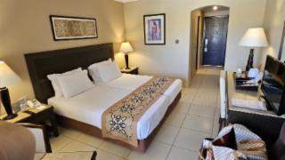 Geht es nach einem gelungenen Tag am Roten Meer ins Bett, legen sich die Gäste in eines der zur Verfügung stehenden Familien- (34 m²) oder Superior Zimmer (44 m²). Zu ihrer Ausstattung zählen Satelliten-LCD-Fernseher, Minibar, Kaffee- und Teezubereitungsmöglichkeiten, Safe, Haartrockner, Rasierapparat und Telefon. Viel Platz bieten die 8 m² großen Balkone. Ähnlich geschmackvoll wie die Gästezimmer ist die Gastronomie eingerichtet, so dass das Essen im „El Khan“ Hauptrestaurant gleich noch mal so gut schmeckt. All-inclusive-Bucher können zusätzlich beim auf dem Außengelände befindlichen „The Food Court“ die dargebotenen Snacks genießen und das Getränkeangebot der Narguila Shisha Bar auskosten. Weitere Köstlichkeiten gibt es an der Lobbybar „El Kholkhal Bar“, der Poolbar und im Crepes Shop. Wer neben dem internationalen Speisenangebot des Hauptrestaurants noch Wert auf andere Gerichte legt, kann sich einen Tisch in den À-la-carte-Restaurants „Nino´s“ (Italiener) und Sofra (orientalische Spezialitäten) reservieren lassen.