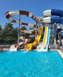 Zu den Außenanlagen des Hotels zählt ein grüner Garten sowie ein Spielplatz für Kinder. Für die kleinen Besucher gibt es außerdem einen Kinderpool. Das große Highlight sind die aufregenden Wasserrutschen und Wasserkanäle. Im Whirlpool steht hingegen die Entspannung im Vordergrund. Am Abend verwandelt sich die Poollandschaft in eine stimmungsvoll beleuchtete Wasserlandschaft mit Animation wie Live-Musik oder Disco. Das Hotel bietet auch einen Nachtclub.