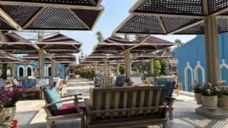Der erste Vorteil dieses Hotels ist die Lage. Es sind von den Hauptgebäuden aus nur wenige Meter bis zum Sandstrand. Zugleich findet man in der Umgebung ein Geschäft für Tauchzubehör, möchte man die Unterwasserwelt entdecken oder aber man genießt am Strand einen Drink in einem der Cafés. Das Badevergnügen am Strand ist in diesem Sinne von Erholung und Entspannung geprägt. Der Außenbadebereich des Hotels ist hingegen von bunten Wasserrutschen, Lagunen, Whirlpools und Kinderbecken geprägt. Insgesamt 11(!) Außenpools sprechen für sich. Auch ein Theater befindet sich im Außenbereich. Es finden sich zahlreiche Liegen und Sonnenschirme rund um die insgesamt drei großen Schwimmbecken. Außerdem gibt es hier eine Pool- und Snackbar. So kann man hier mehrere Tage verbringen, ohne dass es langweilig wird.
