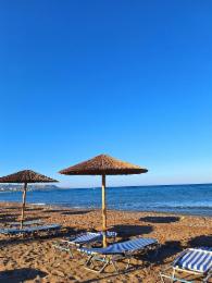 Duschen, Toiletten und Liegestühle und Sonnenschirme (gegen Gebühr). Ein beliebter FKK-Strand ist 600 Meter entfernt.