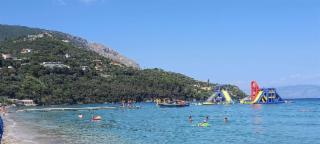 Durch die Hanglage ist der Blick auf die Bucht unschlagbar. Alle Zimmer sind mit Balkon bzw. Terrasse zum Meer hin ausgestattet. Wenn man sich zu Fuß zum Einkaufen oder Baden nach Ipsos begibt, muss man sich beim Rückweg auf den steilen Anstieg gefasst machen. Für fußkranke oder bewegungseingeschränkte Personen ist dieses Hotel nicht geeignet.
