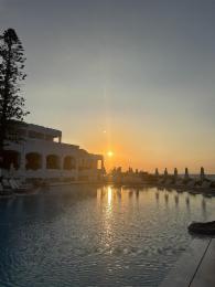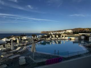 Gäste des Hotels Maritimo Beach dürfen sich auf eine 4-Sterne-Unterkunft in Sissi an der Küste Nordkretas freuen. Die 110 Zimmer befinden sich in sieben einstöckigen, über das Gelände verteilten Häusern. Bucher des Hotels nächtigen in Einzel-, Doppel- (für bis zu drei Personen) oder Familienzimmern (für bis zu vier Personen). Wer kein Zimmer mit (seitlichem) Meerblick zugeteilt bekommen hat, schaut vom Balkon oder der Terrasse aus auf den gepflegten Garten. Klimaanlagen sorgen in den blau-weiß gehaltenen Zimmern für angenehme Temperaturen. Gespeist wird im Hotelrestaurant, das auch über einen Außenbereich verfügt. Neben einem reichhaltigen Frühstücks- und Abendbuffet gibt es im Maritimo Beach internationale und griechische Küche. Mittags wird das Essen à la Carte serviert. An der Snackbar am Pool gibt es kretische Leckerbissen. Die Hotelbar macht das gastronomische Angebot komplett. Wer statt des Hotelpools mit Terrasse, Liegestühlen und Schirmen zum Baden die Ägäis bevorzugt, läuft über das Hotelgelände zum angrenzenden Steinstrand. Darüber hinaus können die Urlauber im Ort Sissi ihr Geschick auf einer Minigolfanlage testen.