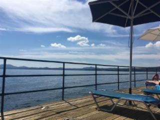 Es gibt Liegestühle und Sonnenschirme (gegen Gebühr). Eine