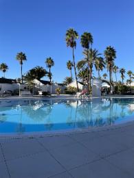 Außenpool mit Palmen im Parque del Paraiso II, Gran Canaria.