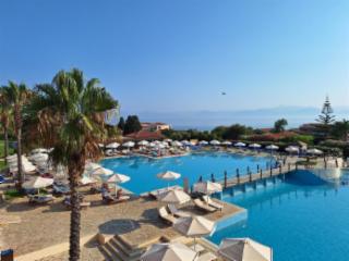 Meiner Meinung nach sind das keine 5 Sterne. Die Bedienung ist langsam und schlecht organisiert. Die Tische werden zwischen den Gängen nicht abgeräumt, es ist nicht ausreichend Besteck am Tisch (wir waren noch vor der Hauptsaison da). Getränke schmecken nach Chlor. Die Zimmer sind klein. Die Zimmer waren sauber. Im Schrank ist Platz für einen Koffer. Der 2. muss aus dem Koffer leben. Bei uns im Zimmer gab es nur einen deutschen Fernsehsender. Leider war ich zur WM da, selbst auf der Großleinwand konnte man Fussball nur auf Griechisch schauen über eine Zimmerantenne, wo das Bild hakt. Der Zimmersafe war nicht mit dem Schrank/Wand verankert, meine Freundin hat den Safe testweise auf das Bett gestellt. Die Anlage ist wunderschön, Es gibt mehrere Pools. Das Personal ist freundlich. Selbst einen Strauß kann man in der Hotelanlage finden. Ich kann das Hotel nur bedingt weiterempfehlen, aber das einzige was mich wirklich gestört hat war der Geschmack der Getränke.