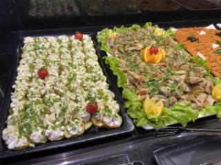 Für die Verköstigung in diesem All inclusive Hotel (Verpflegung im Zimmerpreis inbegriffen) steht die hoteleigene Gastronomie zur Verfügung. Das Restaurant (und eine Bar) sorgt für große Portionen verschiedener frischer Speisen. Auch das Frühstücksbuffet ist schön und reichlich. Man wird hier auf jeden Fall satt und es schmeckt. Auch für Kinder gibt es eine größere Auswahl an verschiedenen Speisen und Getränken, bevor im Miniclub für Kinder wieder viele Beschäftigungen und Spiele warten. Dazu zählt auch eine Minidisco. Das Hotel führt auch ein Animationsprogramm für größere Gäste.