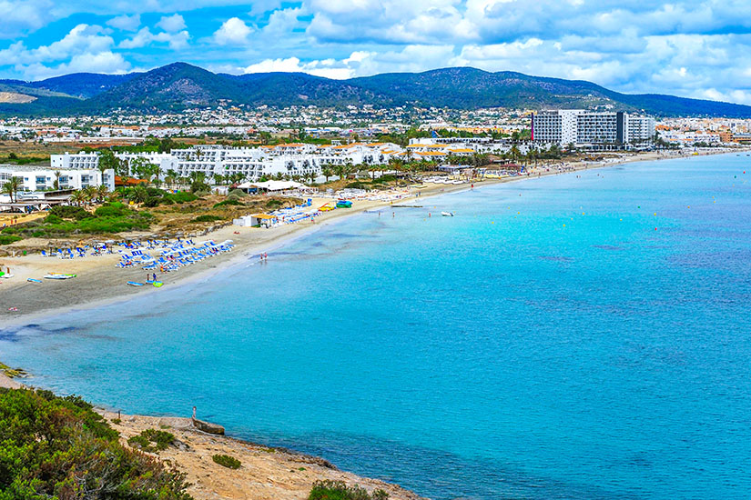 Platja d’en Bossa ist der Strand von Eivissa, wie Ibiza-Stadt auf Katalanisch genannt wird. Freunde des Wassersports, die gerne Wasserski oder Jeski fahren und dem Stand-up-Paddling nicht abgeneigt sind, werden sich hier wohlfühlen. Wenn ihr beim nachmittäglichen Bräunen bereits Lust auf ein alkoholisches Getränk verspürt, könnt ihr einen der Beachclubs ansteuern. Alle, die mehr über ihren Aufenthaltsort wissen möchten, treten eine Besichtigungstour an, wobei der Jachthafen und die ummauerte Altstadt auf dem Programm stehen sollten.