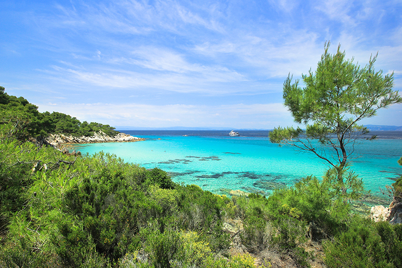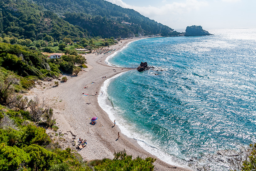 Chalkidiki wird oft auch als der „Grüne Garten“ Griechenlands beschrieben. Inmitten der Halbinsel gibt es hohe Gebirgsketten, die von dichten Wäldern und Hainen umgeben sind. Zur Küste hin fällt das Land dann ab und mündet in tollen Stränden in versteckten kleinen Buchten.