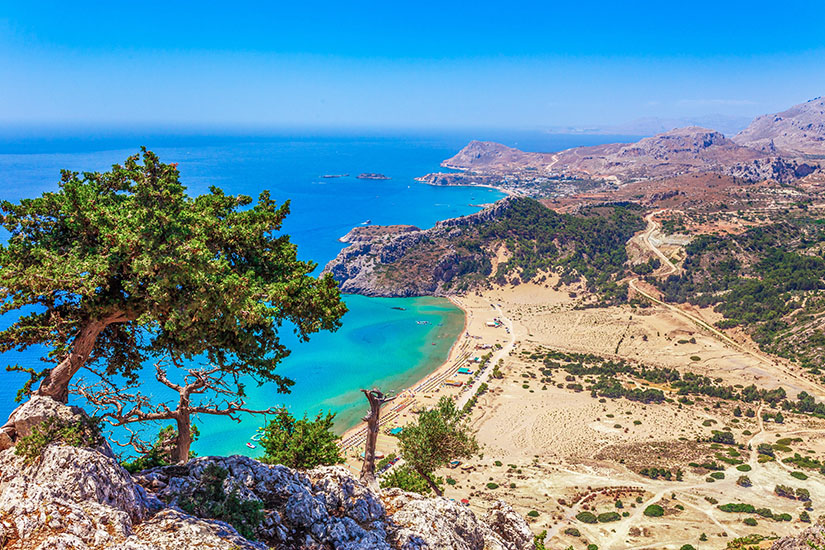 Wenden wir uns nun beim Reisen nach Süden beziehungsweise Rhodos. Es begrenzt die Ägäis nach Osten, ist die größte Insel des Dodekanes und hat der südöstlichen Lage unter anderem viele tausend Sonnenstunden im Jahr zu verdanken. Wenn das Sonnenbaden am Strand euer Fokus ist, dann ist Rhodos wohl der beste Ort dafür, beispielsweise an der Bucht von Tsambika.