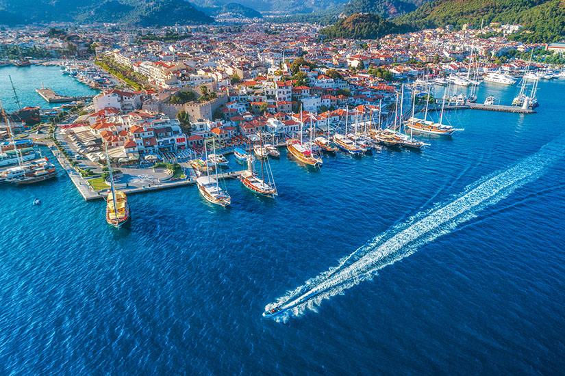 Nordöstlich von Fethiye, gegenüber der Insel Rhodos, befindet sich Marmaris. Der kleine Ort an der Küste hat sich in den vergangenen Jahrzehnten zum wahren Urlaubermagneten entwickelt. Das liegt nicht nur an der idealen Lage und dem ganzjährig warmen Klima, sondern auch an den vielen Angeboten für alle Wassersportler unter euch.