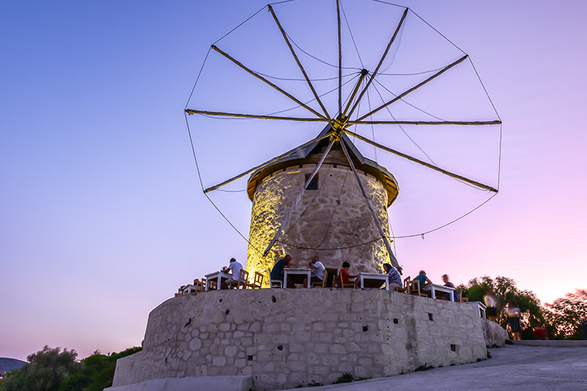 Bei einem Bummel durch die Stadt werdet ihr sicherlich vom Anblick dreier Windmühlen aus weißem Stein überrascht, die euren Blick kreuzen. Etwas höher gelegen thronen die Alaçatı Değirmenleri über euch und komplettieren das einzigartige Bild dieser kleinen Stadt. So solltet ihr unbedingt den Spaziergang nach oben auf euch nehmen, um die drei restaurierten Windmühlen von Nahem zu bestaunen. Über eine Leiter erreicht ihr die imposanten Bauwerke. Umgeben von der wunderschönen Parkanlage des Yeldeğirmenleri Parks, habt ihr nicht nur einen tollen Blick auf die Windmühlen, sondern auch auf die Dächer eures Urlaubsortes Alaçatı. Auch am Abend bei Sonnenuntergang ist dieser Platz ein wahres Highlight, da ihr von hier oben aus auf die beleuchtete Innenstadt herabschauen könnt – romantischer geht es kaum.