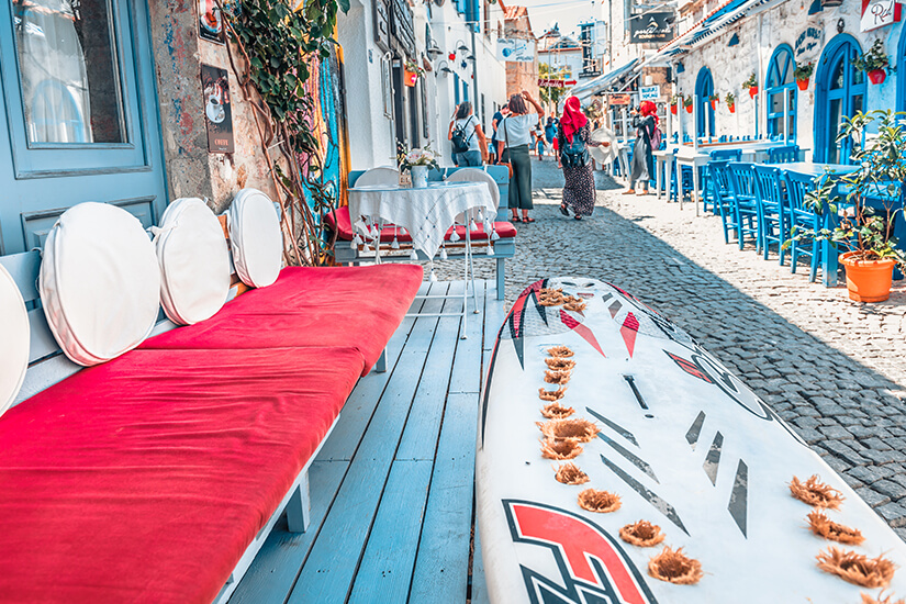 So sind die Strände von Alaçatı die perfekten Orte für Sonnenhungrige und Wassersportler. Aber auch Partyurlauber sind hier gut aufgehoben, denn nicht nur am Abend verwandeln sich die Promenade und die umliegenden Strände zu einer Feier-Meile mit Konzerten, Live-Events und Sonnenuntergangpartys. Auch tagsüber warten schon einige Beach-Clubs mit Live-Djs auf Musikliebhaber.