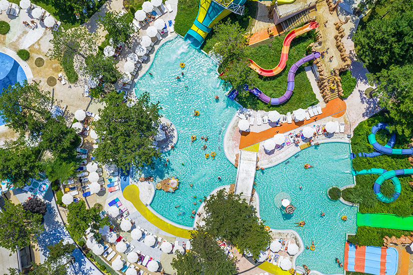 Der Aquapark “Aquamania” wird meist von Familien mit Kindern aufgesucht. Denn: hier wurde mit verschiedenen Attraktionen und sogar einer Kids-Zone an die unterschiedlichen Altersgruppen gedacht. Adrenalinjunkies nutzen die farbenfrohen Wasserrutschen mit scharfen Kurven oder FreeFall-Abschnitten. Oder sie gönnen sich eine Fahrt über den wilden Fluss. Wer es ruhiger mag, schippert gemütlich auf dem Lazy River entlang und erfreut sich an der schönen Kulisse mit Bäumen.