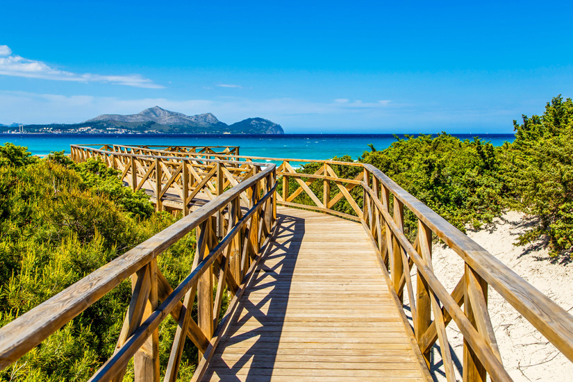 Gemeinsam mit der Playa de Muro markiert die Playa de Alcúdia die größte Sandfläche Mallorcas. Und was für eine! Der Strand ist breit, feinsandig, hell und verfügt über flaches Wasser, das bis weit ins Meer hineinreicht und somit perfekt für Familien mit Kindern geeignet ist. Zudem gibt es Gelegenheiten für Segler, Windsurfer und Abenteuerlustige, die sich auf dem Bananenboot beweisen möchten. Vielleicht wollt ihr außerdem einmal Stand-up-Paddling ausprobieren?