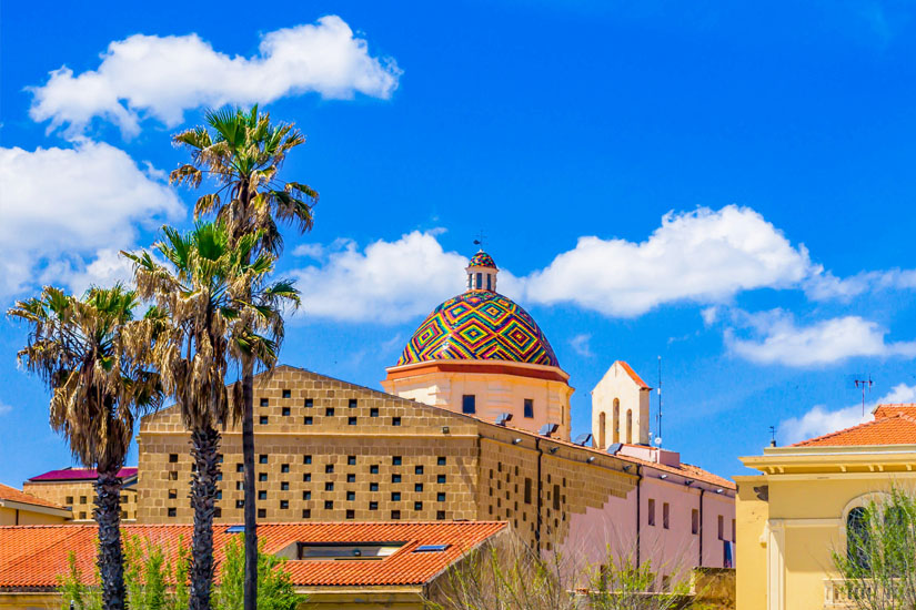 Farbenfroh ragt die Kirche San Michele dank einer Kuppel aus bunt glasiertem Ton in die Höhe – eines der typischen Symbole der Stadt Alghero. Sie verfügt über einen kreuzförmigen Grundriss und stammt eigentlich aus dem 16. Jahrhundert, wurde aber im 17. Jahrhundert neu errichtet. Die farbige Kuppel ist recht “neu” und prägt seit den 1950er Jahren das Stadtbild.