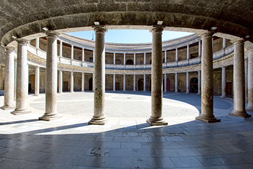 An den Myrtenhof wiederum schließt der Palast Karls V. Seine Besonderheit liegt in der quadratischen Form mit rundem Innenhof, der von zwei übereinanderliegenden Säulengängen eingefasst wird. Die Bauzeit betrug ganze 430 Jahre, nämlich von 1527 bis 1957. Grund waren fehlende Finanzen.