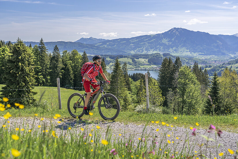 Profi-Biker können sich im Bikepark Bad Hindelang auf insgesamt 17 Freeride-Strecken austoben. Hier gibt es sogar einen Kinder-Parcours, auf dem die Kleinen auf verschiedenen Fahrbelägen spielerisch die Technik erlernen können. Mittlerweile habt ihr im Allgäu auch die Möglichkeit, euch an Stationen ein E-Bike auszuleihen, die euch durch Elektromotoren ohne große Anstrengung auf höhere Ebenen bringen.