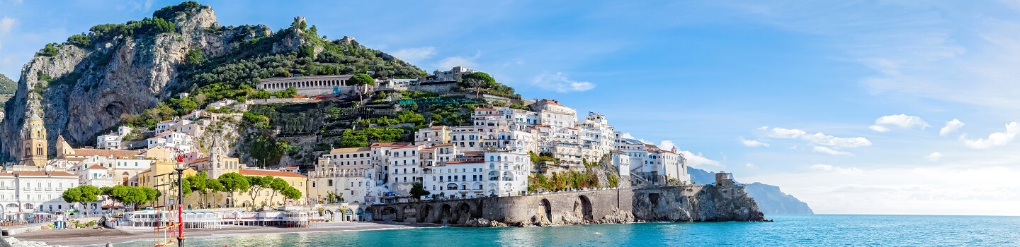 Die Amalfiküste sowie ihre vorgelagerten Inseln Procida, Ischia und Capri waren einst die Urlaubsziele der alten Römer. Sie liegt an der Südküste der Halbinsel Sorrent auf einer bis zu 1.440 Meter hohen Bergkette, welche den Nationalpark „Parco regionale die Monti Lattari“ beherbergt. Ihre steil abfallenden Felsenküsten bieten einen unvergleichlichen Panoramablick über das Tyrrhenische Meer bis hin zum Vesuv. Im Jahr 1997 wurde die Amalfiküste zum UNESCO-Weltnaturerbe erklärt. Weltweite Berühmtheit genießt sie zudem durch die Ausgrabungsstätten von Pompeji, das 79 nach Christus durch den Ausbruch des Vesuv zerstört wurde.