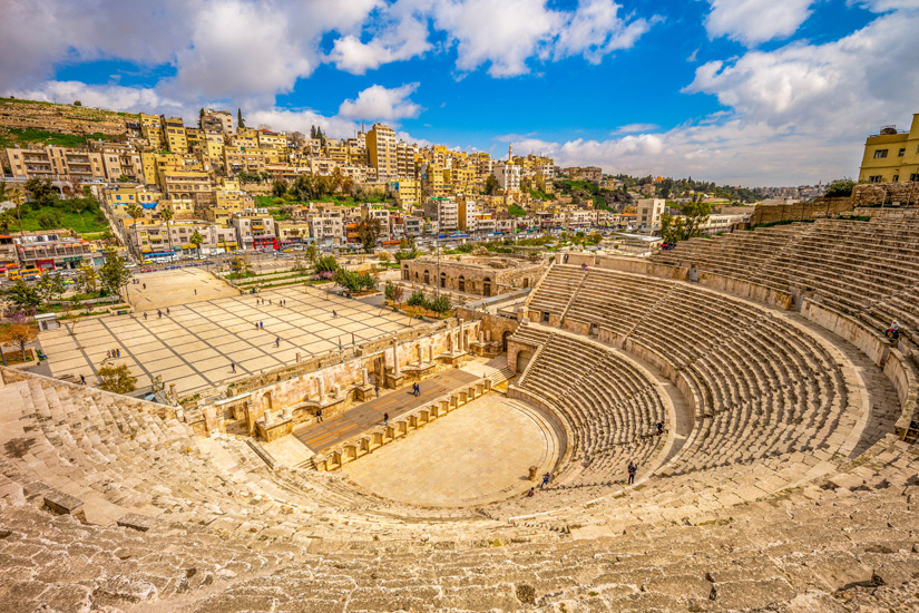 Das größte Theater Jordaniens erwartet euch im Osten der Stadt. Es handelt sich um ein verblüffend gut erhaltenes Amphitheater aus römischer Zeit, das einst Platz für mehr als 6.000 Zuschauer bot. Es soll zwischen 130 und 160 n. Chr. errichtet worden sein. Aufgrund des hervorragenden Zustandes, der durch Restaurierungen in den 1960er-Jahren weiter gestärkt wurde, werden bis heute kulturelle und sportliche Veranstaltungen in dem römischen Theater abgehalten.