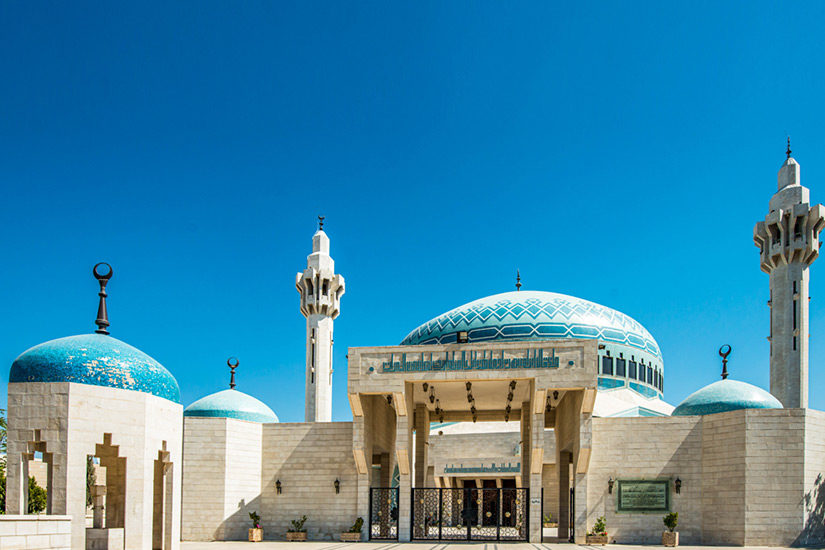 Nicht weniger prachtvoll zeigt sich die König Abdullah Moschee mit einer reich verzierten, blauen Kuppel. Die Moschee blickt auf eine noch relativ junge Geschichte zurück. Sie wurde in den 1980er-Jahren unter König Hussein erbaut und sollte dessen Großvater ehren. Das Gotteshaus bietet Platz für bis zu 3.000 Personen.