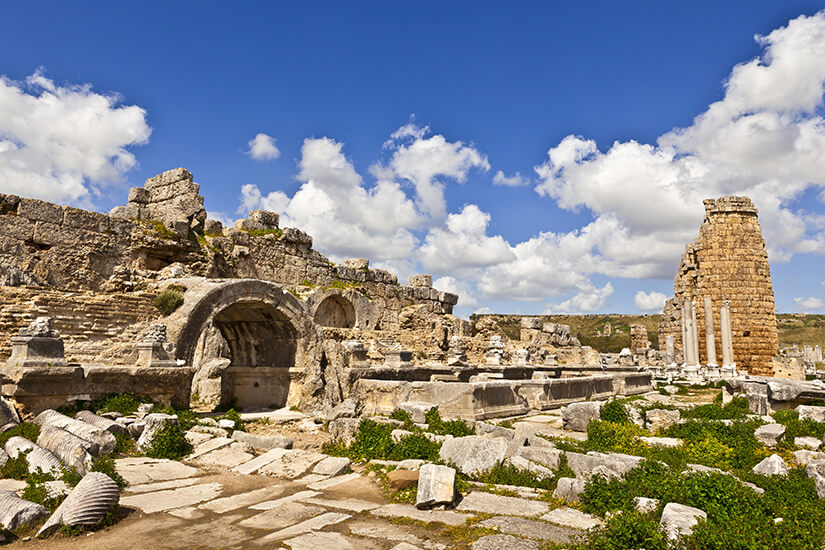 Die antike Stadt Perge ist rund 16 Kilometer von Antalya entfernt und liegt eingebettet zwischen zwei Hügeln. Sie gehört zum UNESCO-Weltkulturerbe und besticht mit ihren gut erhaltenen historischen Mauern und Toren. In der Stadt gibt es außerdem zwei große Bäder und verschiedene Brunnenstrukturen, die Perge den Beinamen der “Wasserstadt” verliehen haben.