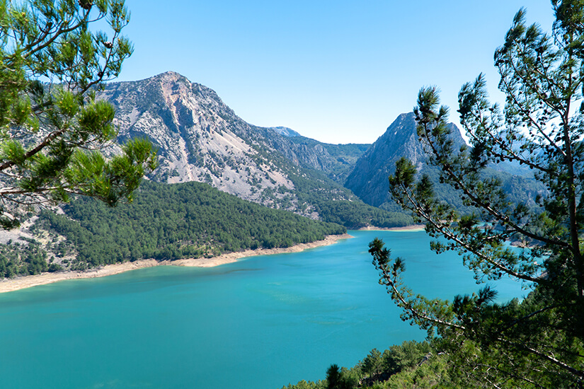 Das nahe gelegene Taurusgebirge bietet eine angenehme Abkühlung, wenn die Temperaturen in Antalya für euch zu heiß werden. Hier könnt ihr Spazieren oder Wandern gehen. Ein mögliches Ausflugsziel im Taurusgebirge ist der Fluss Manavgat. Dieser rund 90 Kilometer lange Fluss verfügt über zahlreiche Ausflugslokale direkt am Ufer, wo ihr entspannen und die türkische Küche genießen könnt. Auch die beiden Wasserfälle und der Manavgat-Stausee sowie die Oymapinar-Talsperre laden zu erholsamen Momenten am Wasser ein. Im Sommer könnt ihr zudem auf dem Fluss mit Booten fahren.