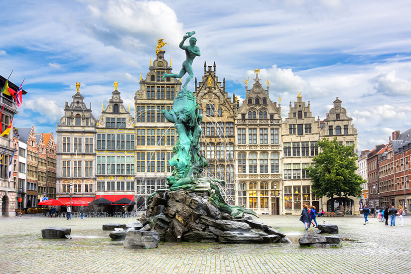 Sicher entdeckt ihr dabei auch das imposante Rathaus aus dem 16. Jahrhundert, welches ebenfalls im Stil der Renaissance beeindruckt. Außerdem besticht es durch den einzigartigen Mix aus flämischen und italienischen Einflüssen. Im Inneren des Rathauses erwartet euch eine bemerkenswerte Einrichtung. Prunkvolle Säle, riesige Fresken und berühmt Gemälde zieren das Interieur. Auch der Brabobrunnen befindet sich mitten auf dem Grote Markt. Der berühmte Springbrunnen wurde von dem Bildhauer Jef Lambeaux entworfen und ziert seit 1887 den Grote Markt. Die Statue aus Bronze zeigt Silvius Brabo dabei, wie er die abgesäbelte Hand eines Riesen in die Schelde wirft. Der Legende nach soll der Riese von allen vorbeifahrenden Schiffen einen Zoll verlangt haben und wer nicht zahlen konnte, dem wurde die Hand von dem Ungeheuer abgetrennt. Noch heute erinnert der Brabobrunnen an die berühmte Stadtsaga und den Retter Silvius Brabo.