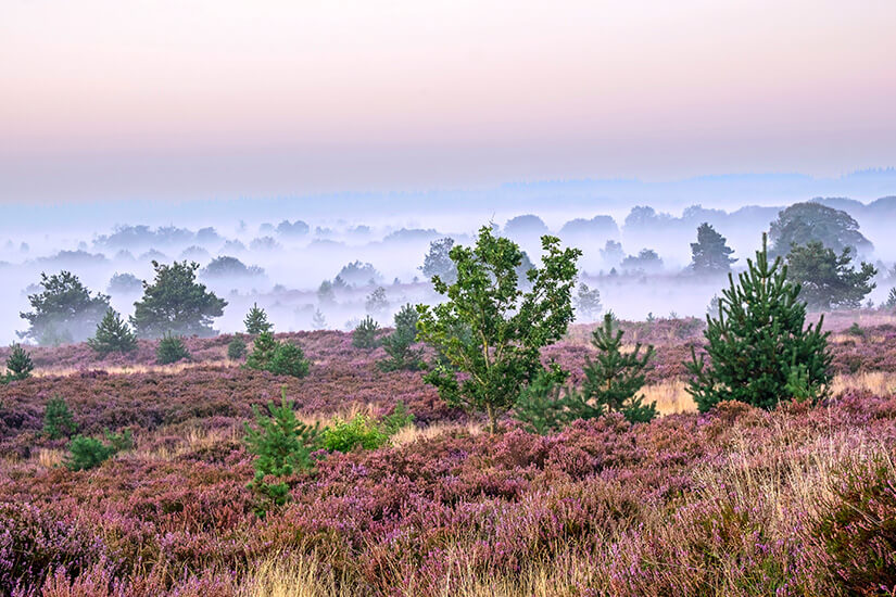Eine Radtour durch den Nationalpark De Hoge Veluwe ist ein absolutes Highlight und eine der schönsten Arten, die niederländische Natur zu erleben! Der Spot ist ein einzigartiges Paradies mit über 5.400 Hektar Wald, Heide, wunderschönen Dünen und Mooren. Das Beste daran: Überall vor Ort stehen die berühmten weißen Fahrräder kostenlos zur Verfügung! Gut ausgebaute Wege schlängeln sich durch verschiedene Landschaften und bieten immer wieder neue, atemberaubende Ausblicke. Besonders magisch ist die weite Erika, die im August und September in einem traumhaften Violett blüht. Mit etwas Glück begegnet ihr unterwegs Wildtieren wie Rothirschen, Mufflons oder Wildschweinen, die frei im Park leben.
