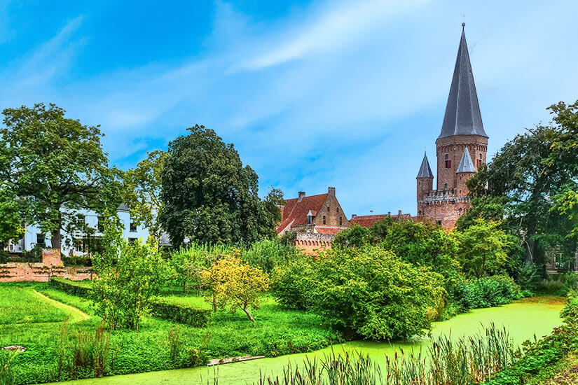 Dieses märchenhafte Ausflugsziel liegt etwa zehn Kilometer westlich von Arnhem in einem idyllischen Waldgebiet. Die beeindruckende Festung, deren Geschichte bis ins 13. Jahrhundert zurückreicht, gehört zu den am besten erhaltenen Wasserschlössern der Niederlande. Im Laufe der Epochen wurde die Anlage mehrfach erweitert und umgestaltet, sodass ihr heute ein faszinierendes Ensemble verschiedener Baustile bewundern könnt. Im Inneren findet ihr mehrere interessante Museen. Die Räume sind mit Möbeln und Gebrauchsgegenständen aus längst vergangenen Zeiten ausgestattet und vermitteln einen authentischen Eindruck vom Leben auf einer mittelalterlichen Burg.