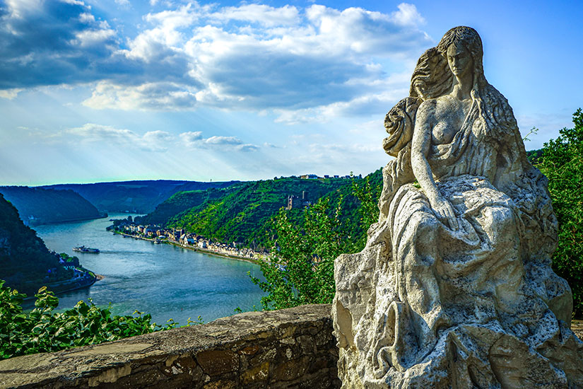 Die Loreley ist ein Felsen aus dunklem Tonschiefer, der seinen Namen der Sage um eine blonde Schönheit zu verdanken hat. In einer Legende aus dem 19. Jahrhundert wird die „schöne Nixe des Rheins“ als gefährliche Femme fatale dargestellt. Loreley verzauberte mit ihrem süßen Gesang die Schiffer derart, dass sie vom Kurs abkamen und mit ihren Booten am Felsen zerschellten.