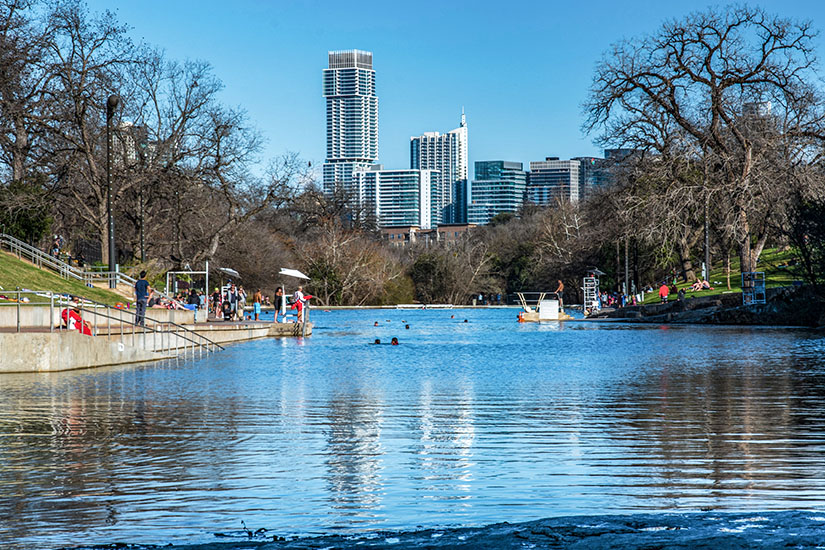 Mitten in der Stadt, unweit des Kapitols, geht der Barton Creek vom Colorado River ab. Dort formt sich Barton Springs, ein natürliches Freibad, welches unter anderem von heißen Quellen gespeist wird. Im glasklaren Wasser könnt ihr baden, schwimmen, tauchen oder sogar Kajak fahren. Direkt nördlich des Barton Springs Freibads befindet sich der Zilker Metropolitan Park, der vielleicht schönste Park der Stadt. Er verfügt über ein Theater, eine Picknickfläche, einen Golfplatz sowie einen wunderbaren Botanischen Garten mit einheimischen und exotischen Pflanzen.