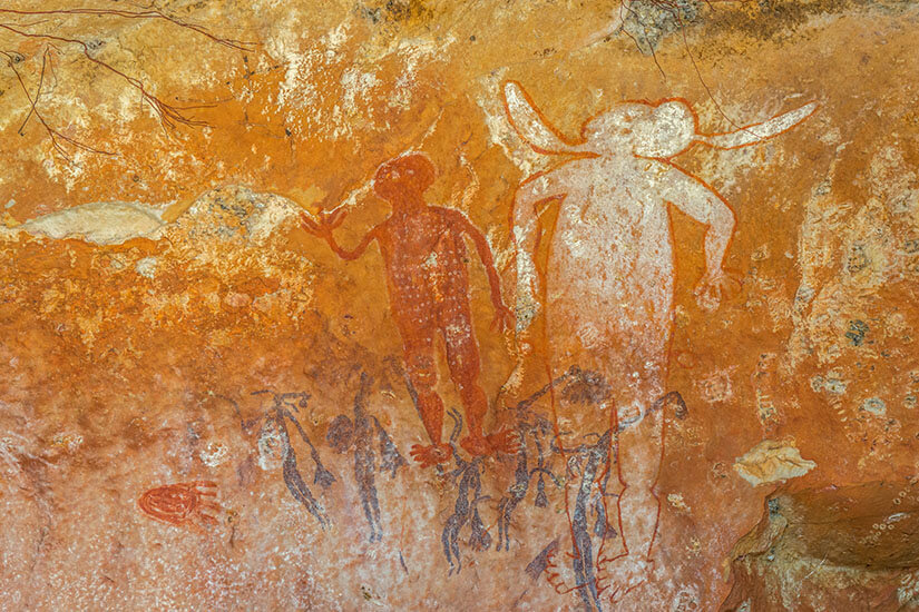 Die Aborigines sind die Ureinwohner, die bereits vor der Entdeckung der Europäer 1770 hier lebten. Ähnlich wie Nomaden zogen sie in durch das Land: mehrere Stämme mit unterschiedlichen Kulturen und tiefer Naturverbundenheit. Seither sank ihre Zahl und es kam zu starken Konflikten, unter denen viele Aborigines noch heute leiden müssen. Ihre Traditionen und ihre Kunst können an vielen Orten bewundert werden.