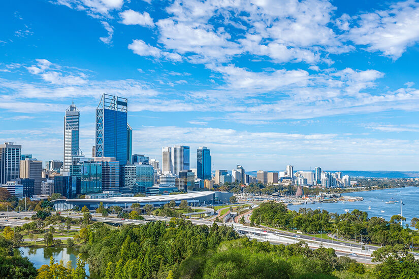 In Western Australia wartet Perth auf euch – die Hauptstadt des Bundesstaats. Buntes Treiben in der Innenstadt trifft auf weiße Strände mit Paradiesfeeling, das mit 3.000 Sonnenstunden im Jahr abgerundet wird. Am Abend verwandelt sich die „City of Lights“ in ein funkelndes Lichtermeer. Im Stadtteil Freemantle laden angesagte Lokale zum Schlemmen ein, Weinkenner machen einen Ausflug zum nahegelegenen Swan Valley und Tierliebhaber fahren zum Ningaloo Reef, um Walhaie zu beobachten. Von Perth setzt ihr mit der Fähre nach Rottnest Island über und die Quokkas, eine freundliche Art der Kurzschwanzkängurus, begrüßen euch mit einem großen Lächeln. Zum Abschluss könnt ihr auf die Aussichtsplattform des Bell Towers am Barrack Square gehen und einen atemberaubenden Ausblick erhaschen.