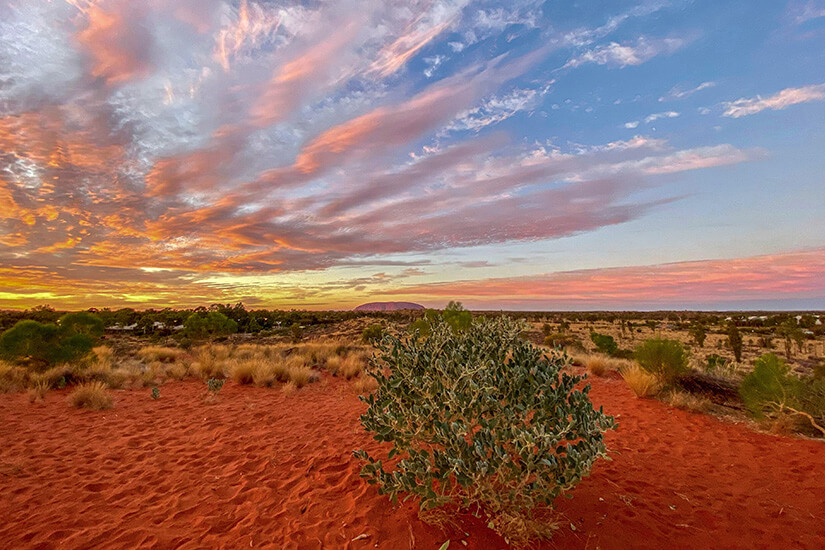 Der weltberühmte Uluru oder Ayers Rock ist ein 350 Meter hoher Inselberg im Zentrum Australiens. Er hat eine große kulturelle Bedeutung als Heiliger Berg der Anangu. Wer ihn aus der Nähe besichtigen möchte, muss sich an die markierten Wege halten und die Wünsche der Aborigines respektieren. Mindestens genauso schön wie ein Spaziergang zum Uluru ist es, den roten Felsen im australischen Outback beim Sonnenuntergang aus der Ferne zu betrachten. Im Cultural Center erfahrt ihr Wissenswertes über die Bedeutung des Berges und die australischen Ureinwohner.