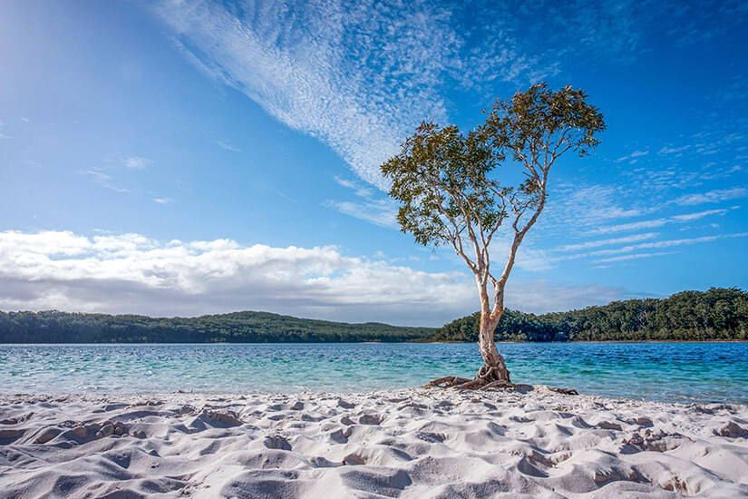 Von der australischen Ostküste von Queensland gelangt ihr zur größten Sandinsel der Welt: Fraser Island. Auf 1840 Quadratkilometern erwarten euch Abenteuer und Naturidylle pur. Kein Ort weltweit verfügt über eine solche Vegetation auf sandigem Untergrund, denn neben 240 Meter hohen Wanderdünen findet ihr einen Regenwald mit exotischen Tier- und Pflanzenarten. Das „Paradies“ der Aborigines und UNESCO-Weltkulturerbe entstand vor weit mehr als 700.000 Jahren, indem Erosionsmaterialien durch Flüsse und Winde vom Festland in den Norden transportiert wurden.