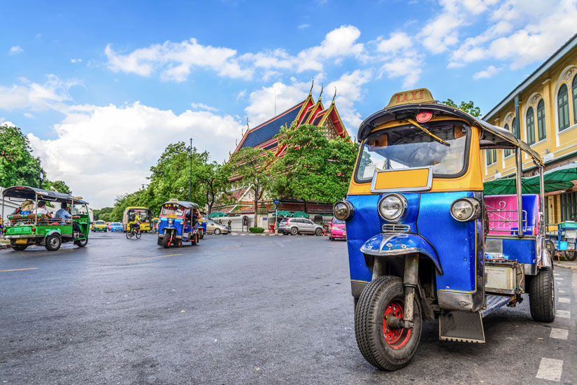 Zu Fuß lebt ihr in Bangkok ziemlich gefährlich. Wann ihr im Gewusel der Stadt gefahrlos einen Zebrastreifen überqueren könnt, müsst ihr erst eine Weile lernen. Vorsicht: Einfach irgendwo über die Straße zu rennen kann gefährlich werden. Schnappt euch lieber ein Tuk Tuk oder ein Stadttaxi und lasst euch zu den Sehenswürdigkeiten kutschieren. Auch der öffentliche Nahverkehr ist erstaunlich gut ausgebaut. Per Metro, Bus oder Skytrain erreicht ihr alle Ecken der Stadt schnell und günstig.